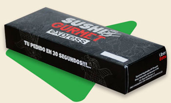 Elaborada en cartón sulfatado, por lo que posee una mayor resistencia con respecto a otros materiales. Gracias a sus dimensiones son ideales para el empaque de sushi y sus complementos además de otros productos alimenticios.